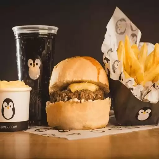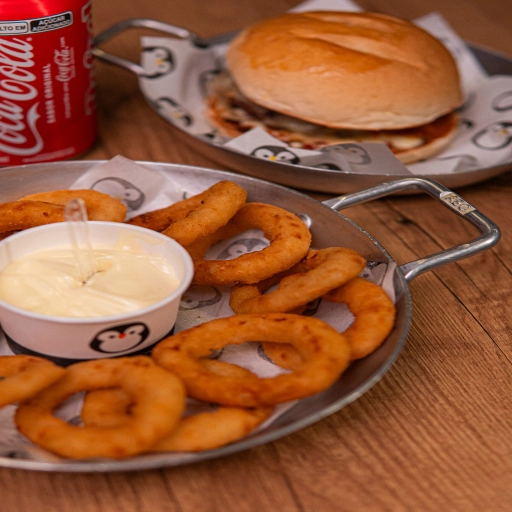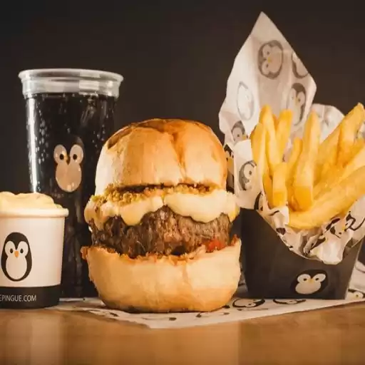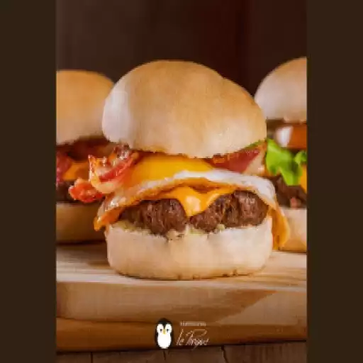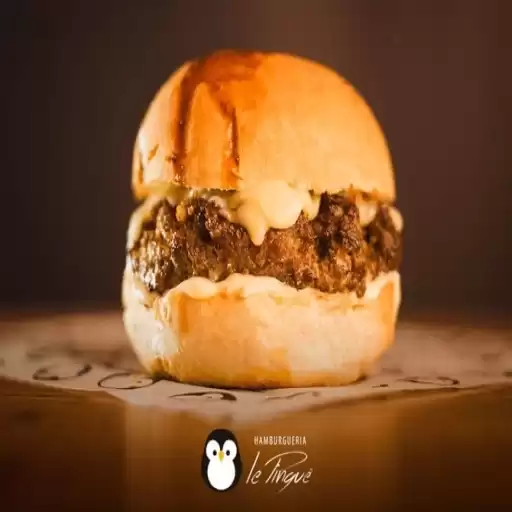 Pão da Casa, Molho de Queijo, Dois Hambúrgueres de 100g cada, Queijo Prato, Ketchup Le Pinguê e Bacon. (Acompanha Fri... Ver completo