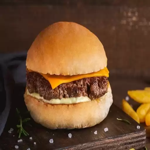 Pão e Maionese da Casa, Hambúrguer de 100g e Queijo Cheddar. (Acompanha Fritas, Bebida e Maionese da Casa)