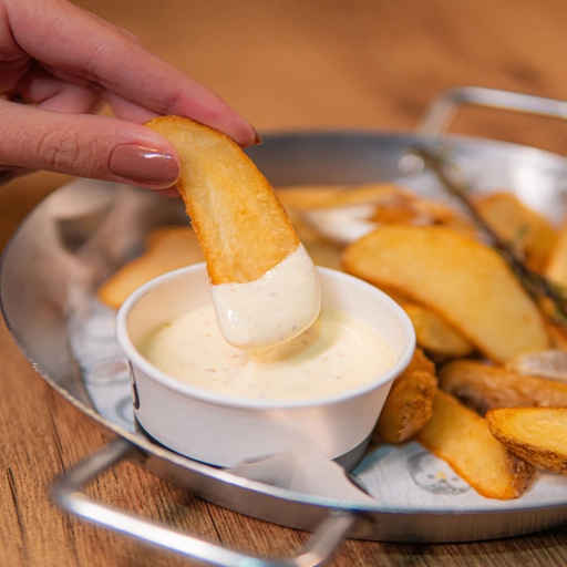 Batatas cortadas em canoa, macia por dentro e crocante por fora. Acompanha Maionese da Casa (25ml).