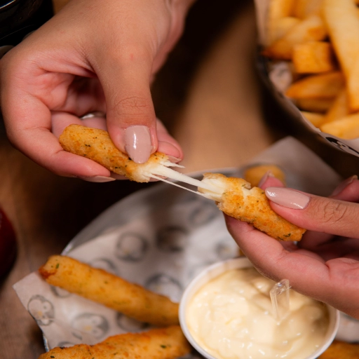 Pão e Maionese da Casa, Hambúrguer e Queijo Muçarela.